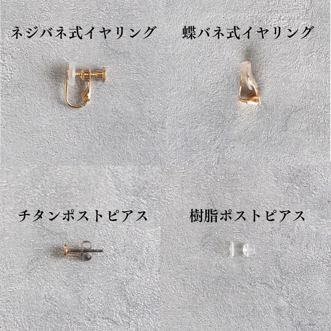 ネジバネ式イヤリング・蝶バネイヤリング・チタンポストピアス・樹脂ポストピアスよりお選びください。