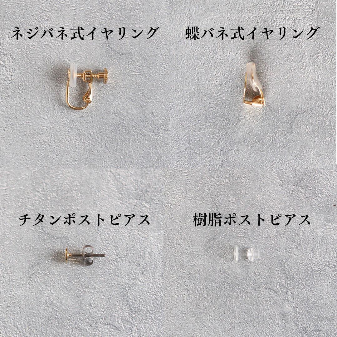 ネジバネ式イヤリング・蝶バネイヤリング・チタンポストピアス・樹脂ポストピアスよりお選びください。