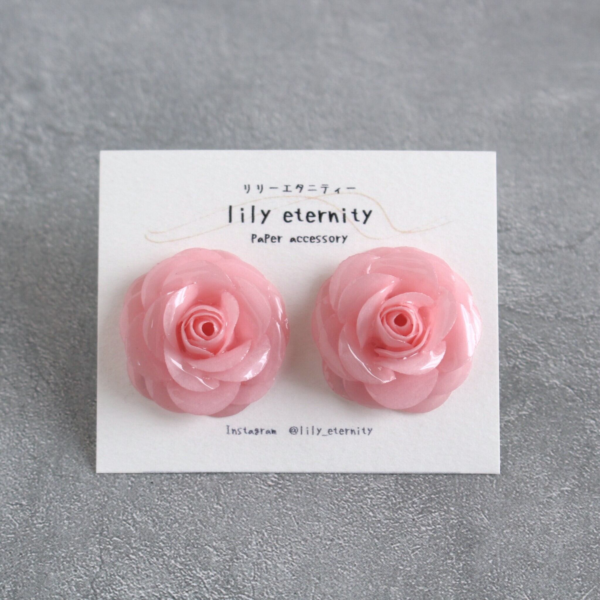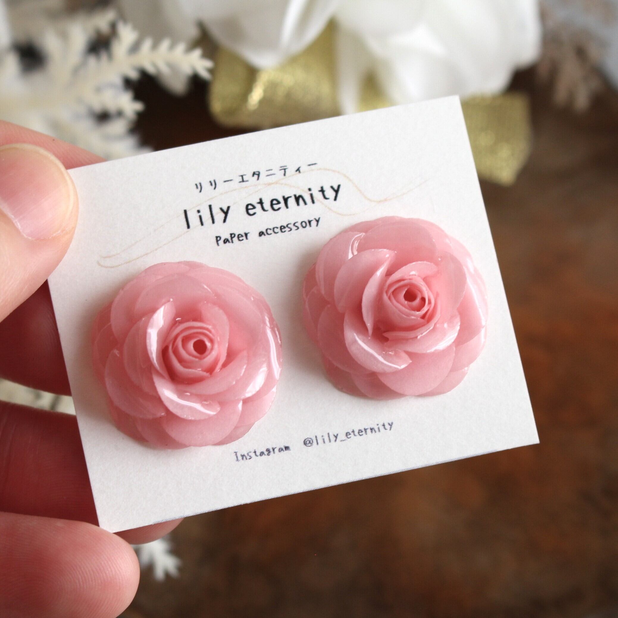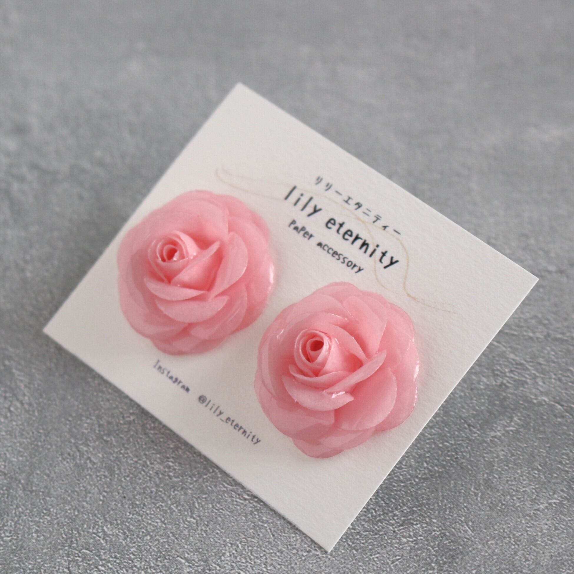 一枚一枚、紙を重ねて丁寧に仕立てた紙のローズイヤリング/ピアスです。