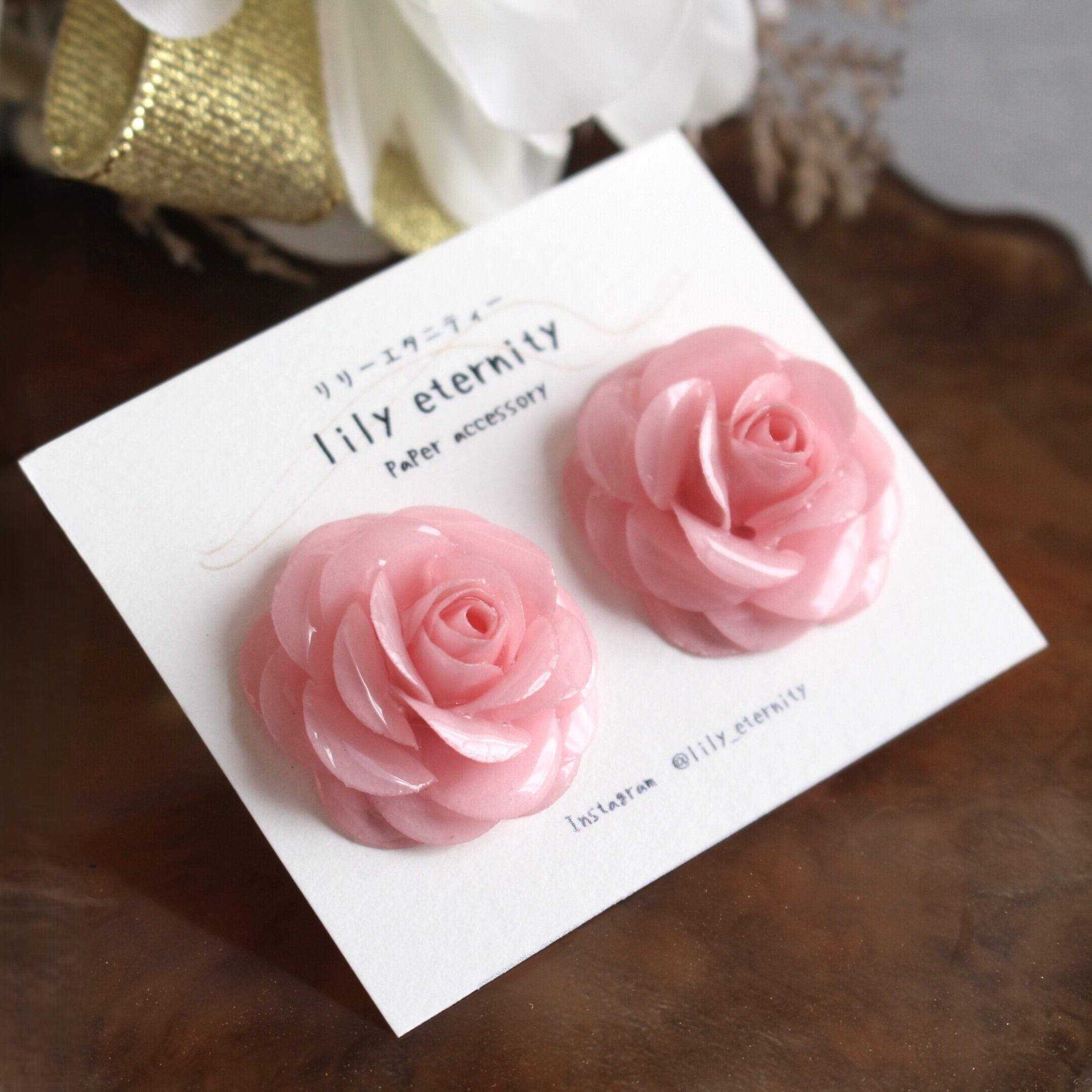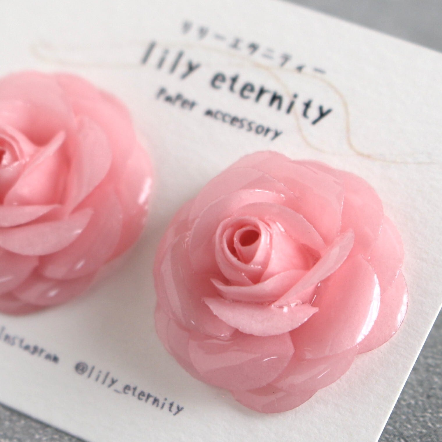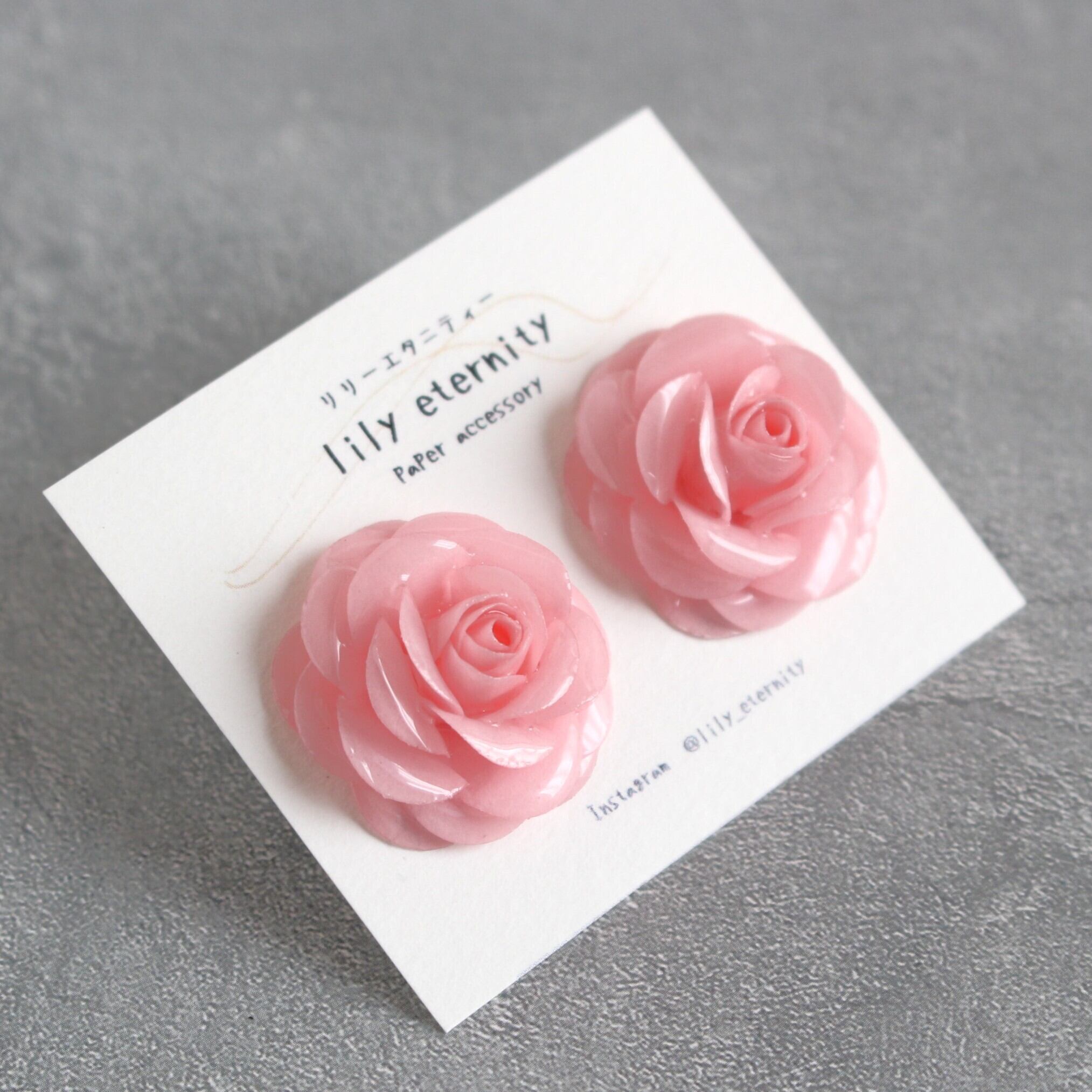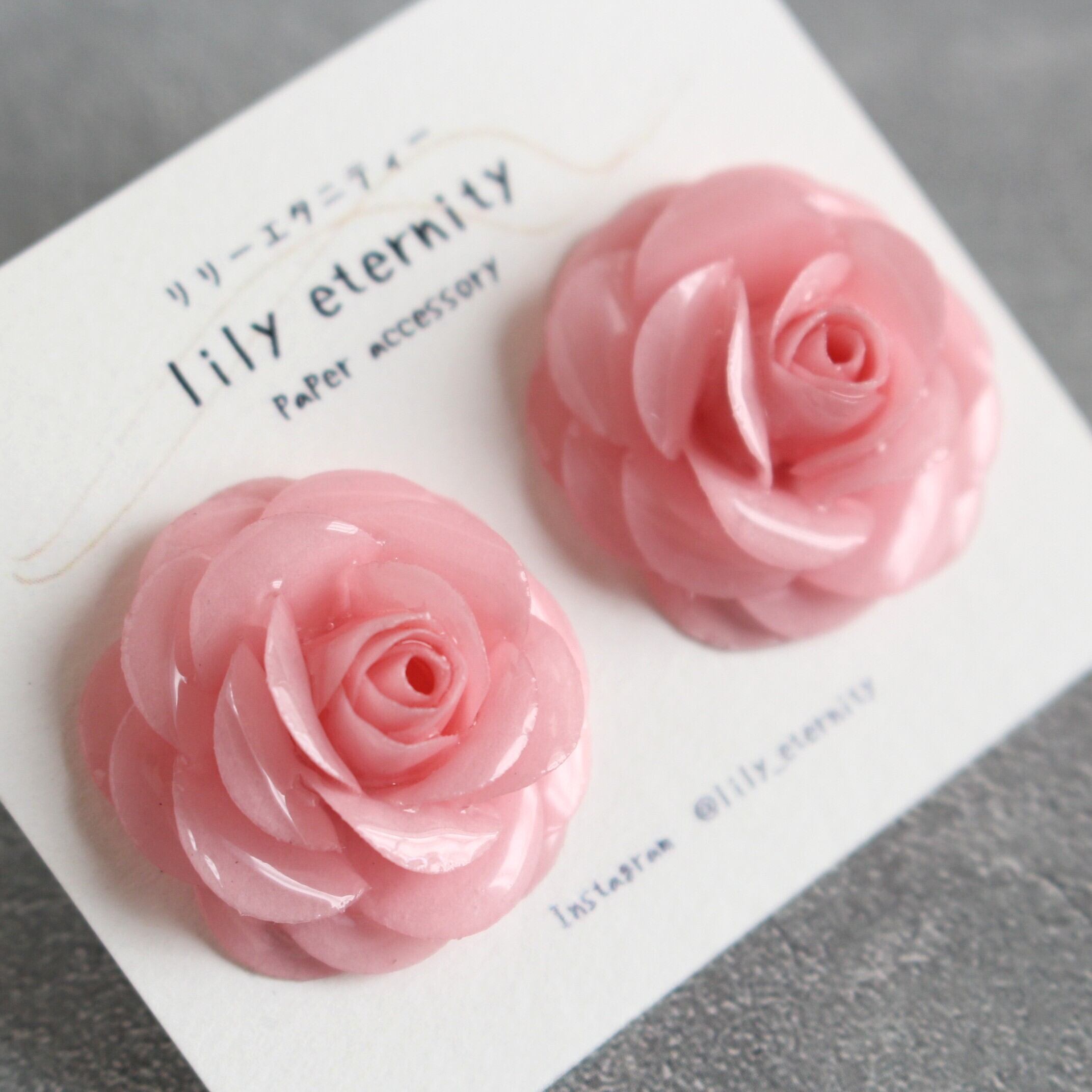 一枚一枚、紙を重ねて丁寧に仕立てた紙のローズイヤリング/ピアスです。