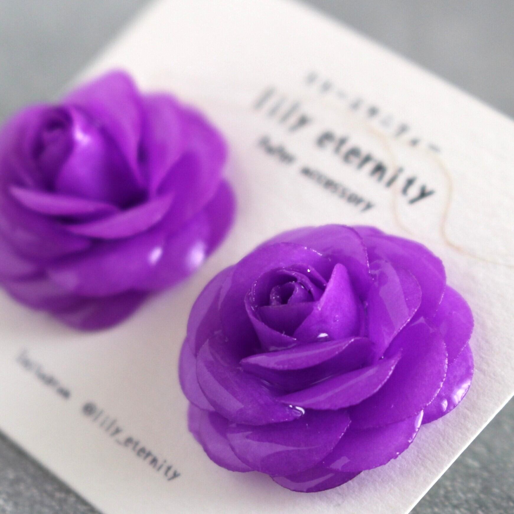 紫バラ イヤリング/ピアス