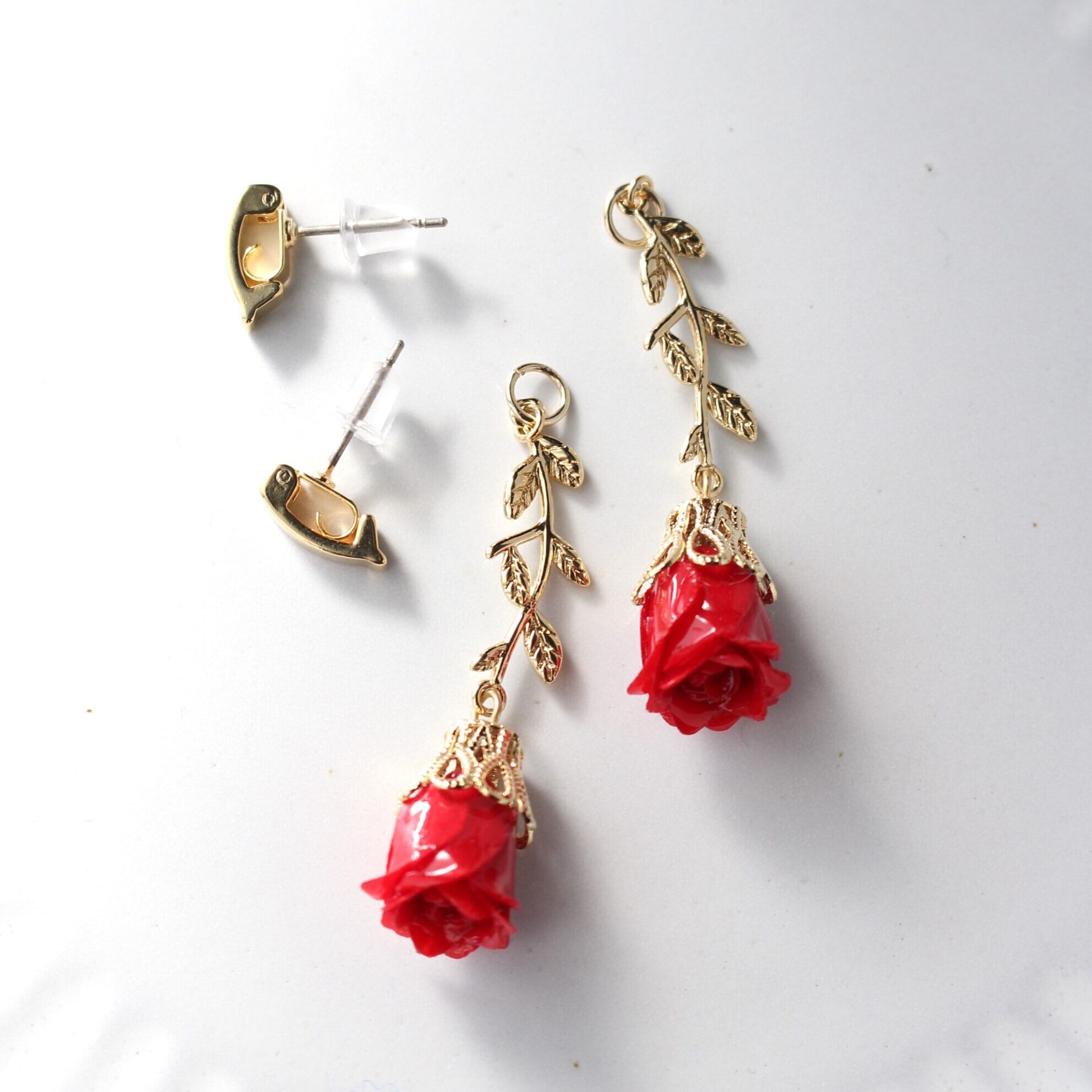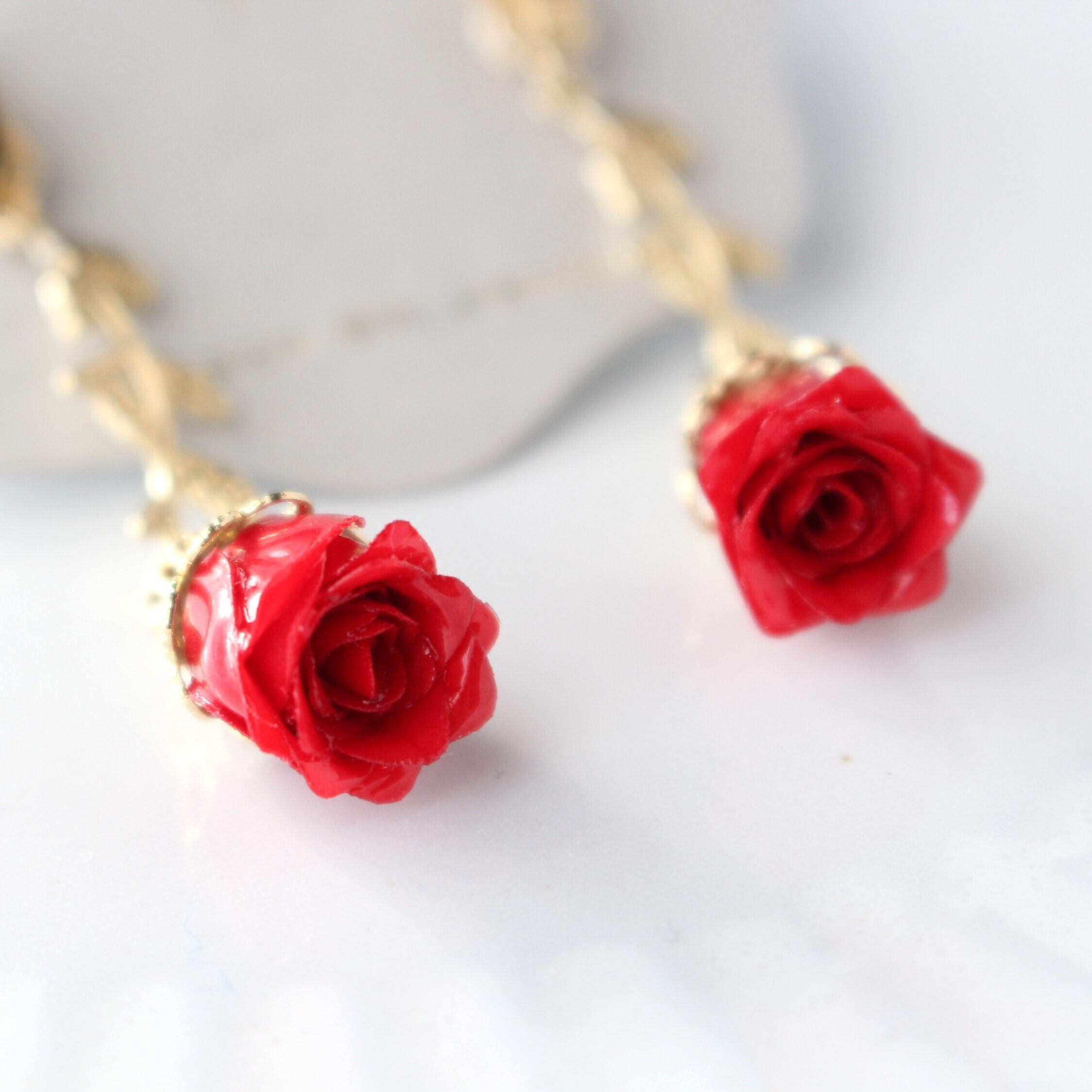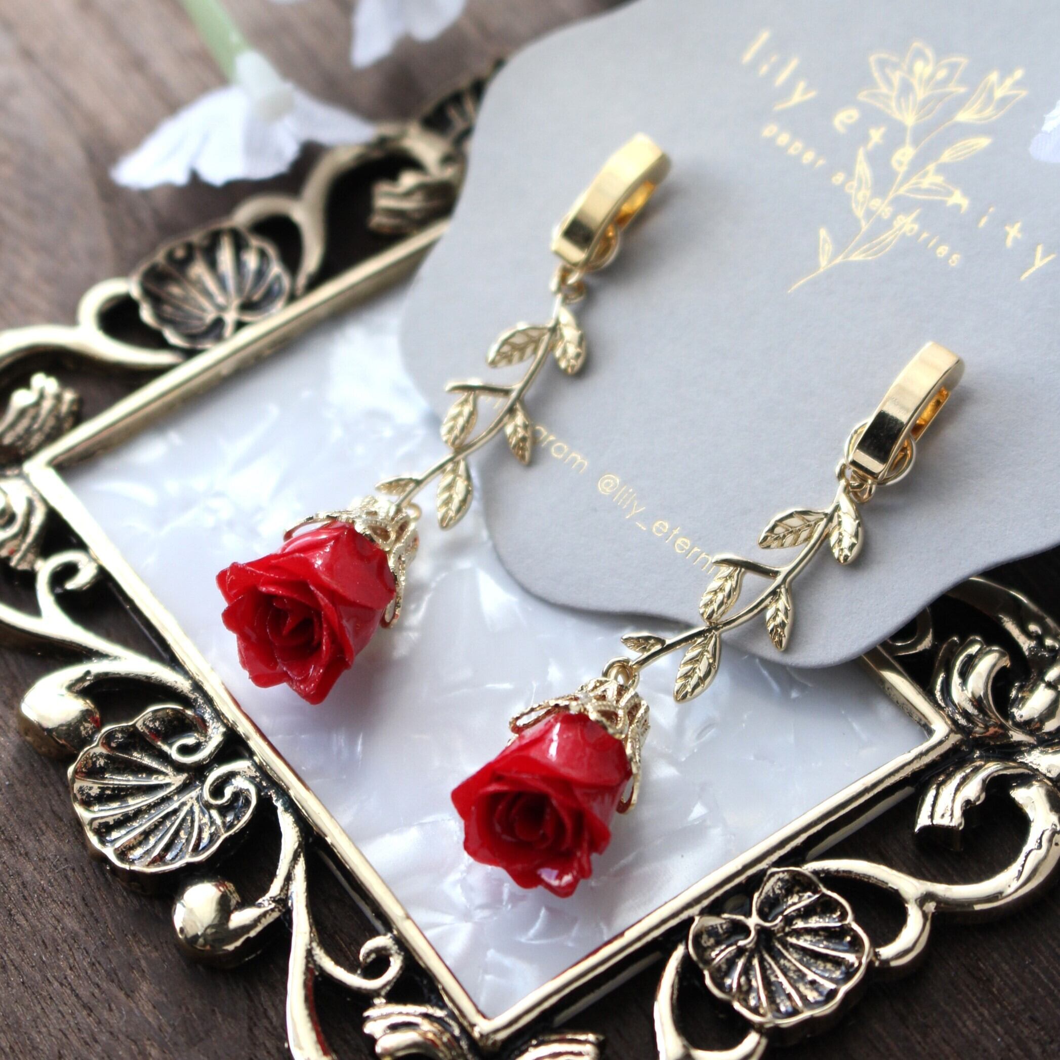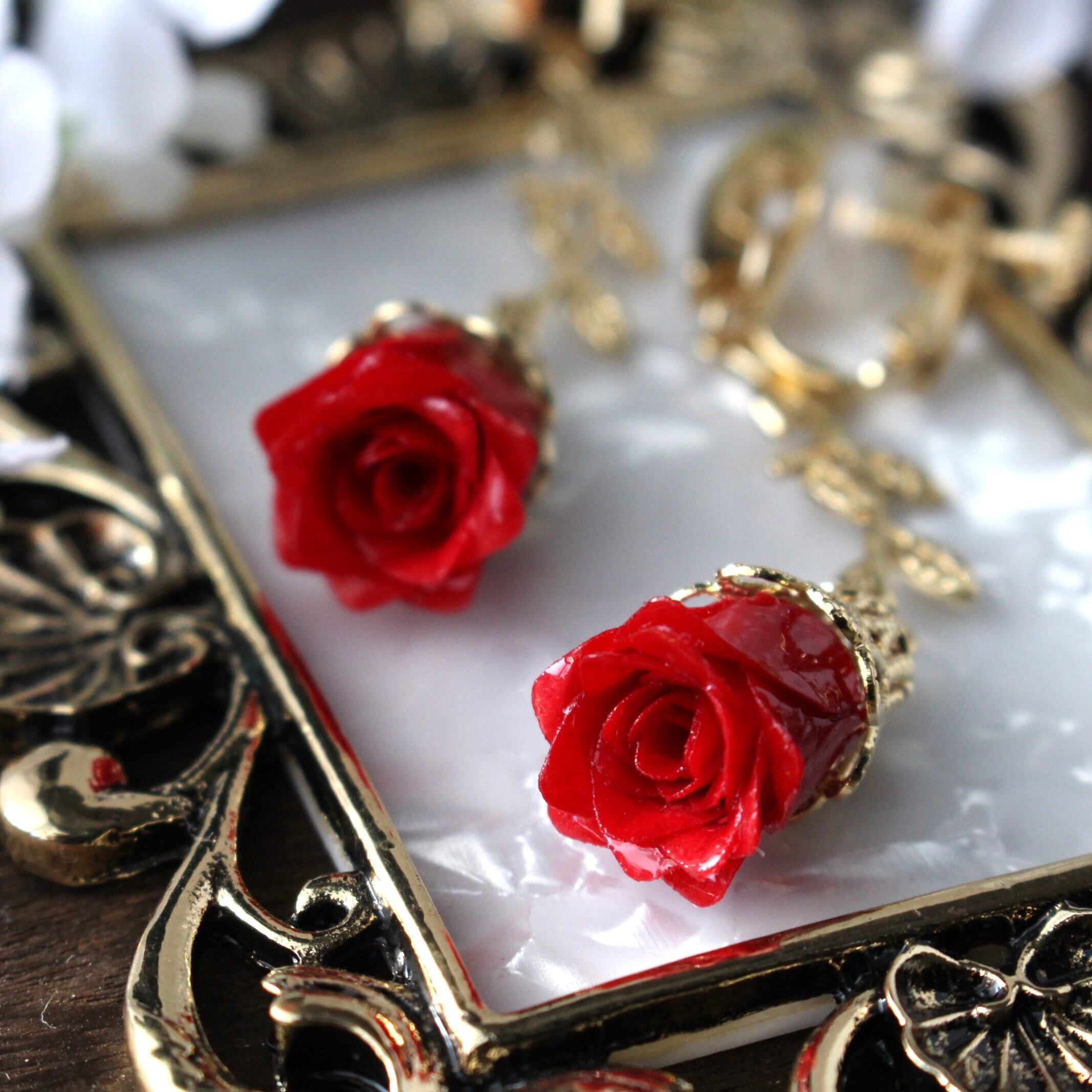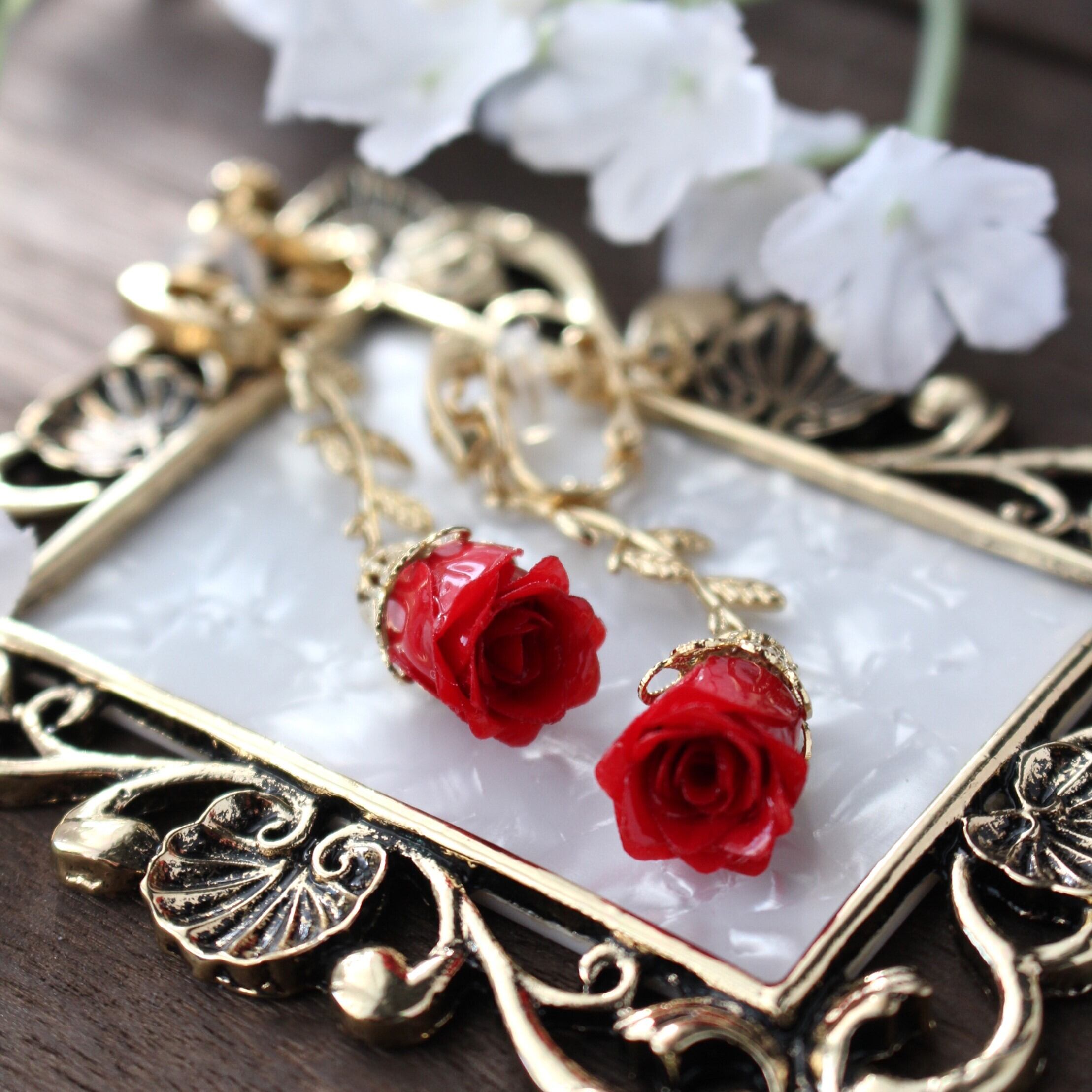 ゆれる赤いバラ 2way イヤリング/ピアス